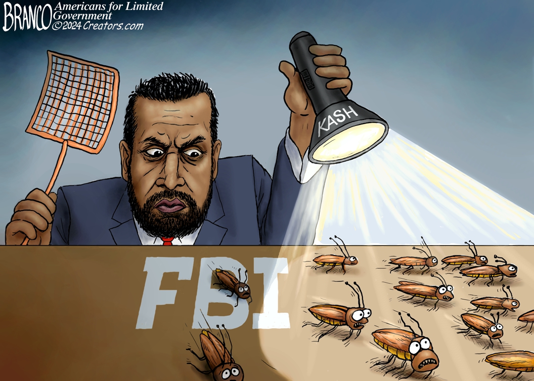 A.F. Branco Cartoon – When it comes to possible nominees for FBI Director, Kash is king. He’s behind Trump and MAGA 100 percent, and he’s familiar with how Washington works and how deceitful the swamp creatures can be. The FBI needs an overhaul, and he’s just the guy who can do it.