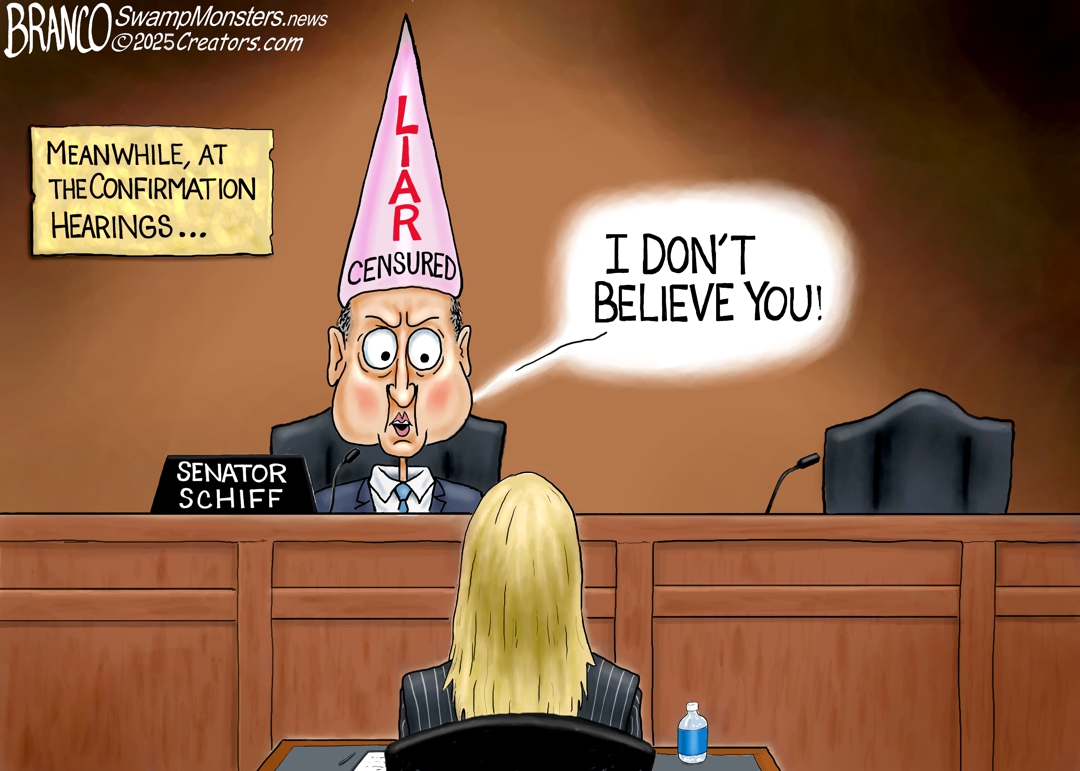Known liar Schiff, also censured in Congress for lying about Trump in the Russia collusion hoax impeachment hearings, is at it again with his pointed attack on Pam Bondi during the confirmation hearings.