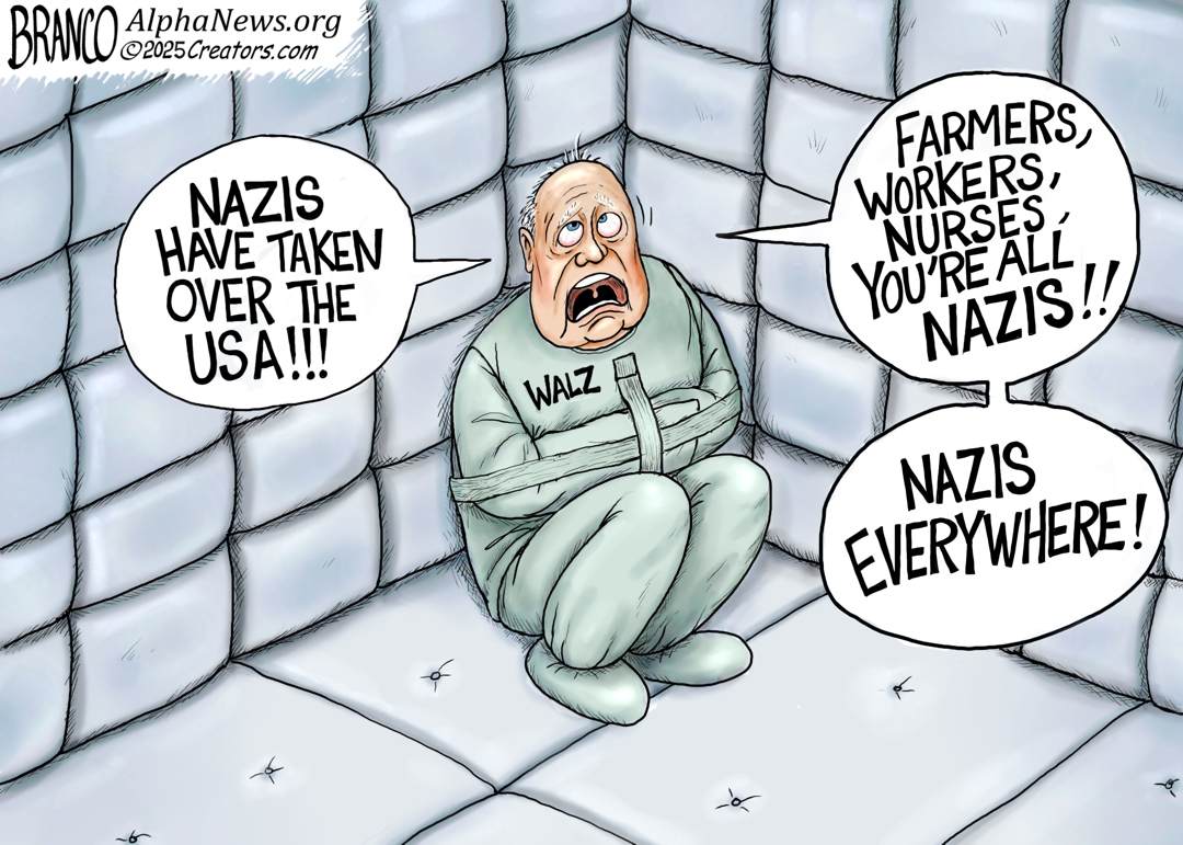 Walz is demonstrating acute paranoia saying Nazis and Fascist are taking over the U.S.. A communist Saul Alinsky tactic accusing a majority of American voters of being Nazis, or has he completely lost it?