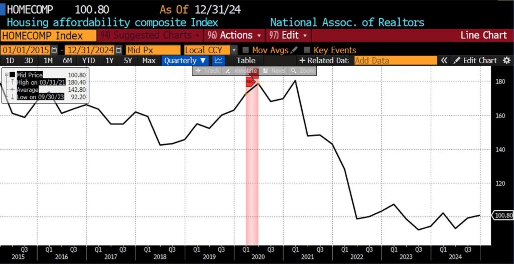 10. Housing Affordability Index, First-Time Buyers (National Association of Realtors)