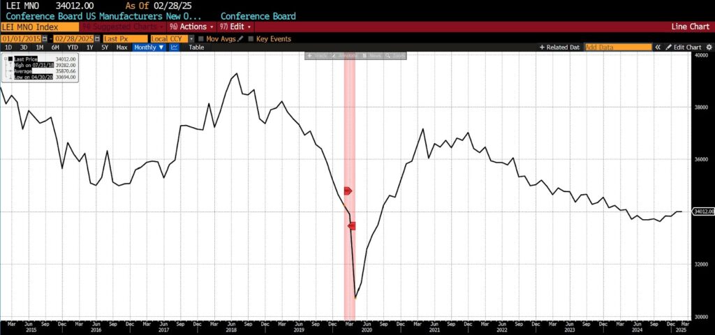 One key indicator is the Conference Board’s New Orders for Nondefense Capital Goods Excluding Aircraft, which serves as a proxy for business investment in equipment and durable inputs. From 2015 through early 2020, the metric showed steady growth, signaling strong confidence and ongoing capital formation. But in the wake of pandemic disruptions, new orders plummeted. Although recovery began in 2021 and was supported by historically low interest rates, the metric remains below its pre-pandemic trajectory. As of March 2025, a slight month-over-month decline (-0.1 percent ) suggests that firms remain cautious about long-term investment. The uneven rebound signals lingering uncertainty in the business environment and may point to structural concerns like reshoring, labor shortages, or geopolitical risk.