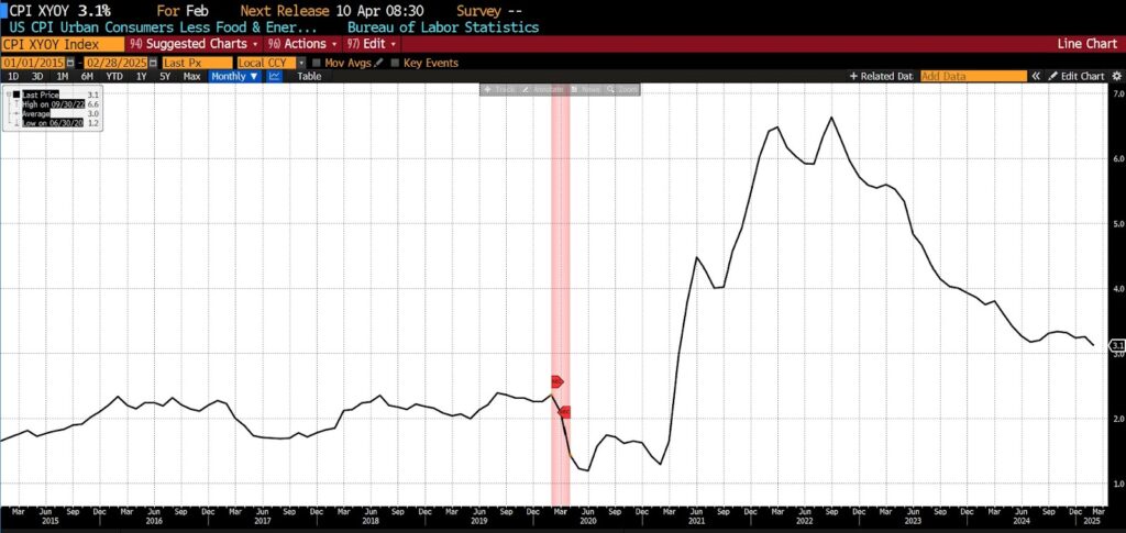 2. US CPI Ex Food & Energy, Year-Over-Year (US Bureau of Labor Statistics)
