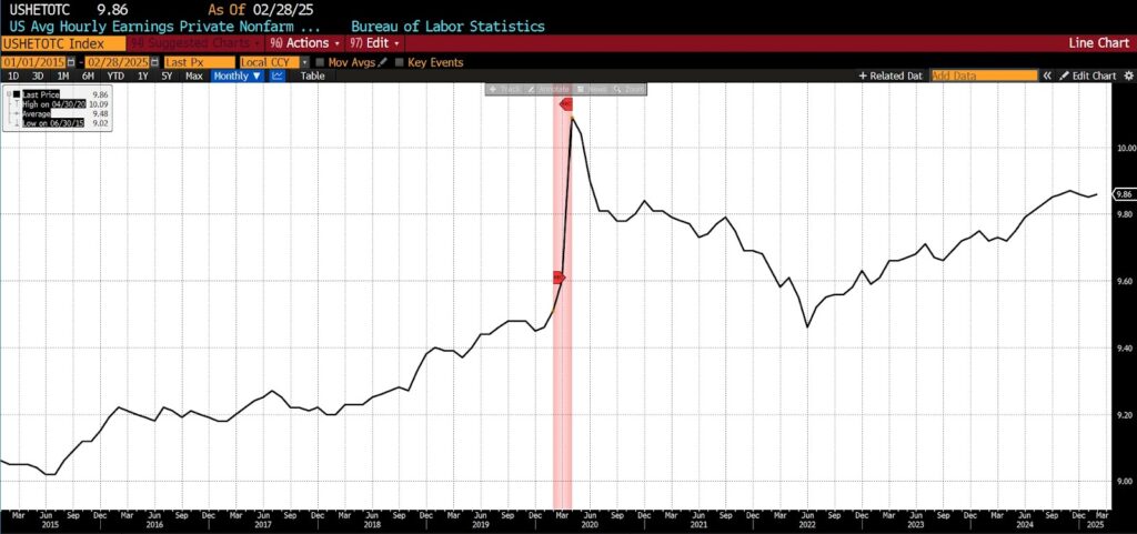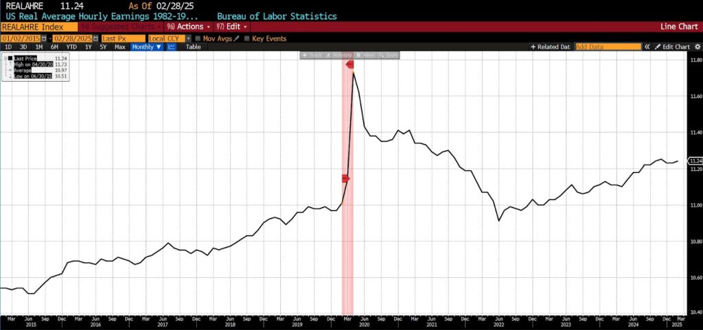 Similarly, real average hourly earnings in the private nonfarm sector have struggled to regain momentum. Prior to 2020, steady gains reflected a competitive labor market and healthy economic fundamentals. Post-pandemic, however, wage growth has been neutralized by rising prices, leaving many workers with stagnant or declining real incomes. While some sectors — such as tech and logistics — have fared better, much of the workforce remains in a holding pattern. This weak earnings recovery affects not just consumption but also savings, investment, and overall quality of life.