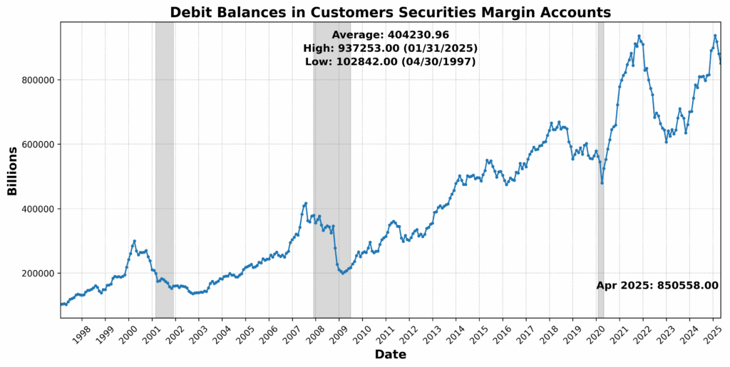 However, the sharp drop in the Lagging Indicator in December suggested that longer-term conditions, such as credit and cost structures, were already under pressure. After Trump’s inauguration in January 2025, the Leading Indicator declined again and has since continued its downward path, reaching just 38 in April — the lowest reading since late 2023. This steady erosion likely reflects mounting concern over the implications of the administration’s aggressive tariff posture, which by early April was being formally articulated but not yet broadly implemented. While the Lagging Indicator has rebounded (reflecting higher credit usage and other late-cycle dynamics), the broader pattern — of shrinking forward momentum, steady but unremarkable coincident activity, and an increasingly heavy reliance on back-end economic support — suggests that businesses and investors are growing wary of near-term risks. The honeymoon of post-election enthusiasm appears to have ended, and the economy is now bracing for the real-world impact of rising trade barriers and policy volatility.