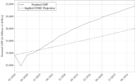 Figure 3: The Path of Nominal GDP and the FOMC’s Implied Projection