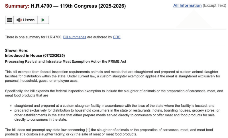Expand local meat processing. There is a meat slaughter and processing bottleneck in the US, which has been present for 10 years. Only meat slaughtered in a USDA-inspected plant can be sold across state lines. But there are not enough facilities and not enough inspectors.