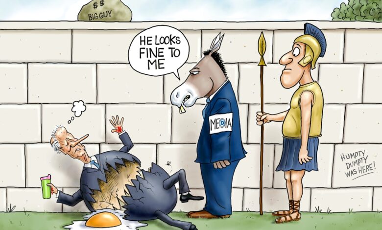 It’s obvious Biden is falling apart, and all his men and all his soldiers can’t put him together again. Mumbling…