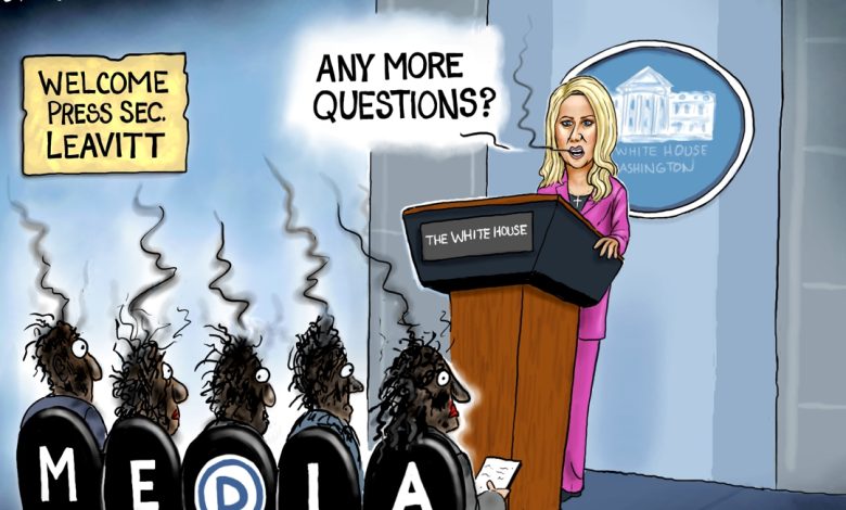 Read More »A.F. Branco Cartoon – The new Press Secretary, Karoline Leavitt, is on stage and fired. Gringe is gone, and the…